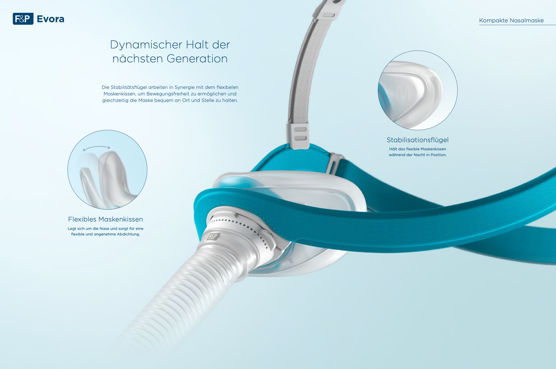 Fisher & Paykel Evora kompakte Nasalmaske Fit Pack- CPAP Schlaftherapie Nasal-Maske inkl. Maskenkissen S/M/L