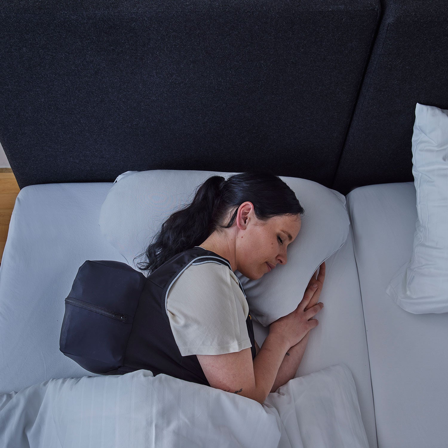 Das Seitenschläfer- und CPAP-Kissen LINA ist die perfekte Ergänzung für Ihre Nachtwaechter Schlafweste. Absolut individuell höhenverstellbar und super-komfortabel. Damit passen Sie Ihre Kopflage perfekt ergonomisch und stützend auf die Seitenlage an und haben so ein optimales Schlafgefühl.