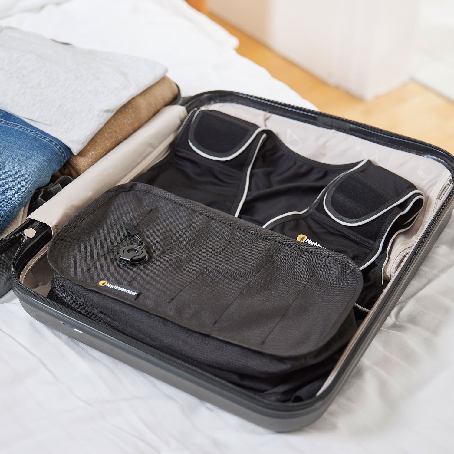 Die Nachtwaechter Reisetasche ist ideal für den Transport Ihrer Nachtwaechter Schlafweste bei der Reise oder unterwegs. Sie ist auch ideal für Schmutzwäsche, Schuhe und vieles mehr.